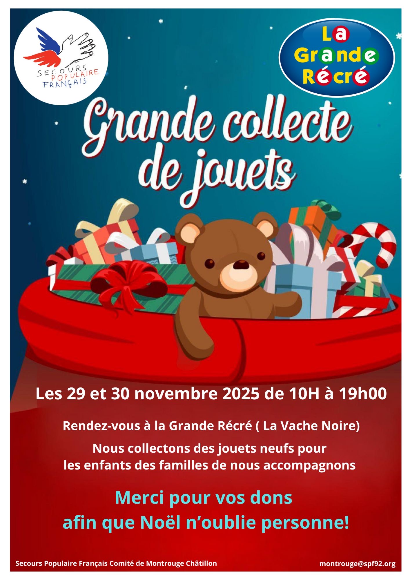 Le dimanche 30 novembre, notre comité s’est associé à La Grande Récré pour organiser une collecte de jouets, au profit des enfants accompagnés par notre